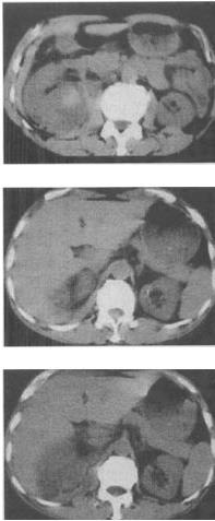 男,25岁,右腰部疼痛伴血尿,有外伤史,CT扫描如图所示,应诊断为()。