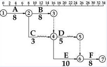 【背景资料】某安装公司通过招标承接到某中型电气照明系统安装的施工合同,合同工期40天。安装公司确定的施工项目有:A配管明敷、B配线安装、C配电箱配电板安装、D插座和开关安装、E灯具安装、F调试整改验收,并根据合同工期和施工条件制定了施工进度计划,如下图所示。